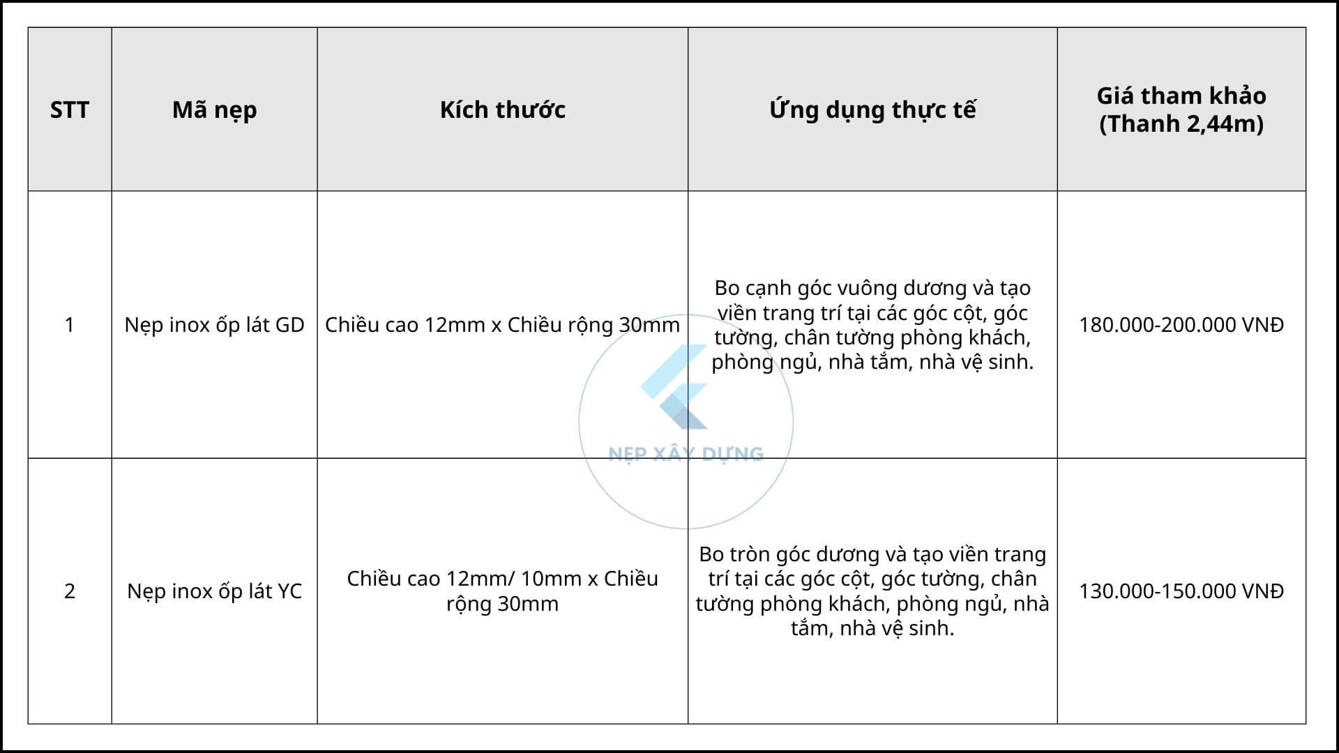 Nẹp inox ốp lát GD - Nẹp inox ốp lát YC