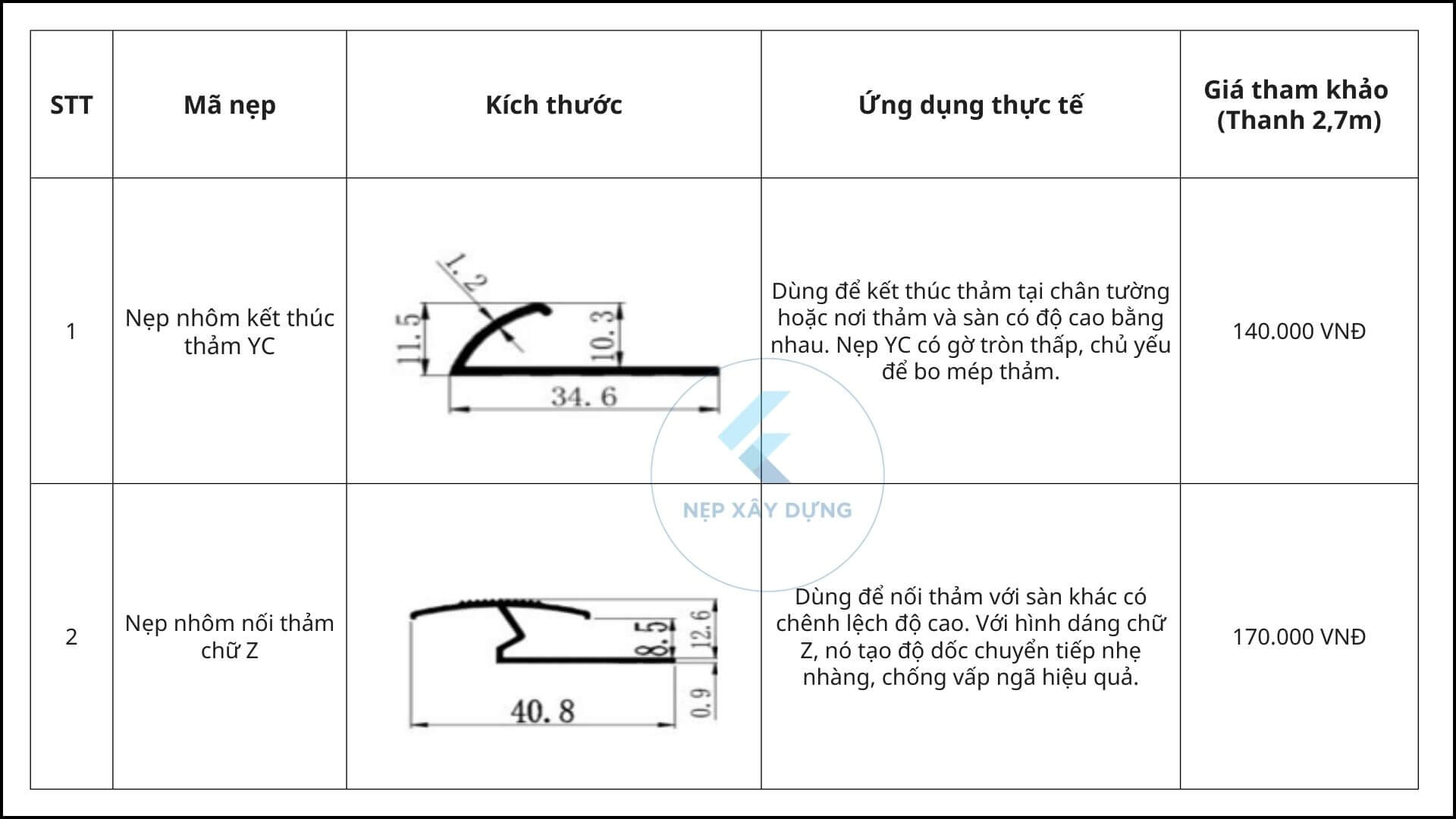 Khi quyết định sử dụng nẹp nhôm kết thúc thảm, khách hàng thường đặt ra các câu hỏi:Kích thước nẹp thảm nhôm ra sao?