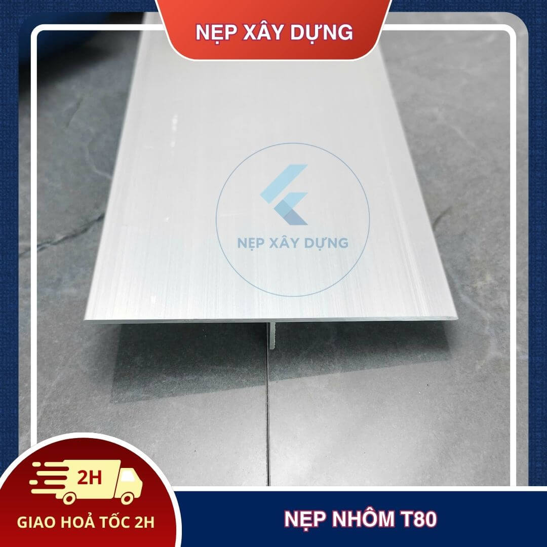 Nẹp nhôm T80 được làm từ chất liệu hợp kim nhôm 6063 T5 cao cấp, với kích thước mặt cắt 80x10mm. Được dùng để xử lý che khuyết điểm tại vết nứt, các điểm liền kề trong xây dựng và bảo vệ các khe lún, khe co giãn trên bề mặt phẳng như tường, sàn, sân,…